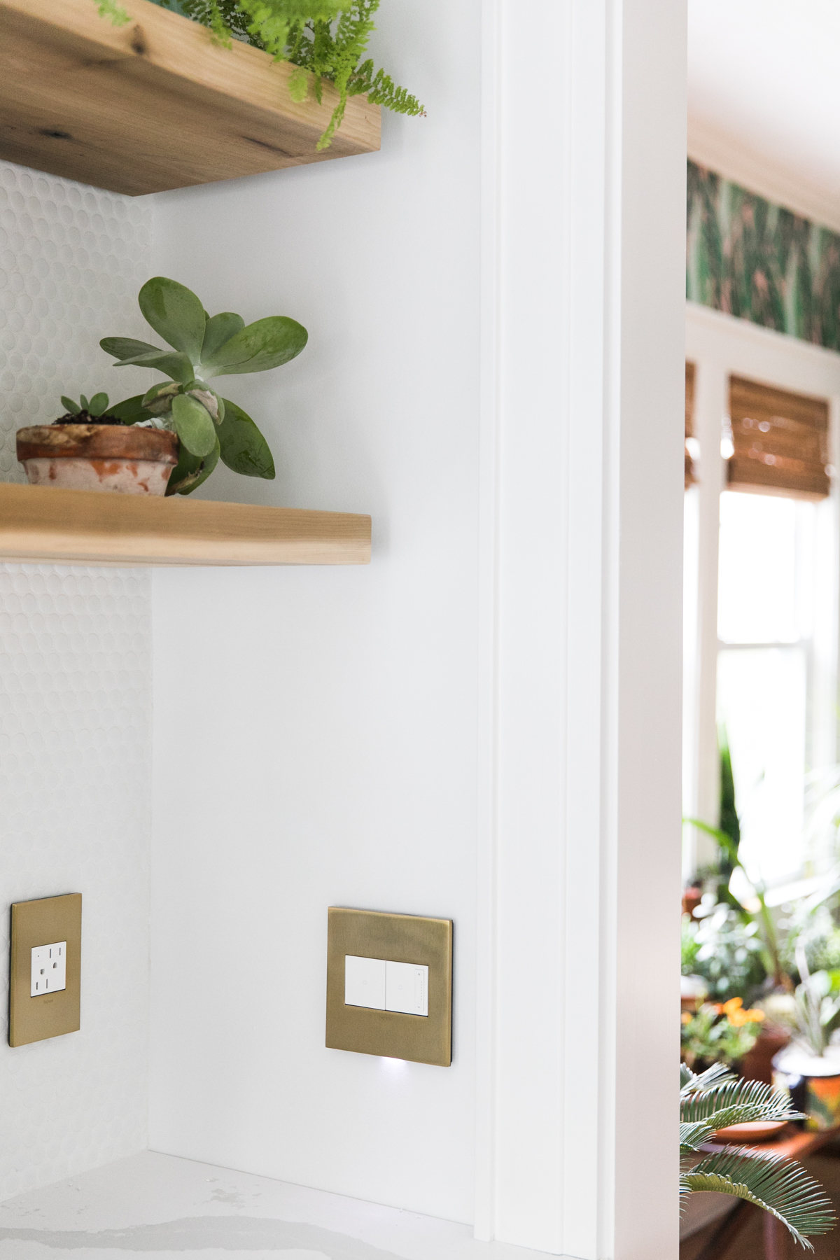 Seeing Legrand’s switch plates and outlet covers installed was a welcome sight. Just feast your hungry eyes at that precious nightlight. Maybe, JUST MAYBE, I’ll be making a latte in this kitch sitch rurrrrl soon. ☕️ the adorne Collection brings in such a sophisticated feel to the space. Initially, I was a bit dubious introducing modern hardware in an older home. With such a wide selection, it was rather effortless to find pieces that spoke to me and pair so well with the antique reproduction brass plates and outlets I’ve incorporated into my home. The brushed brass has got this modest patina about them, and I adore that immensely.