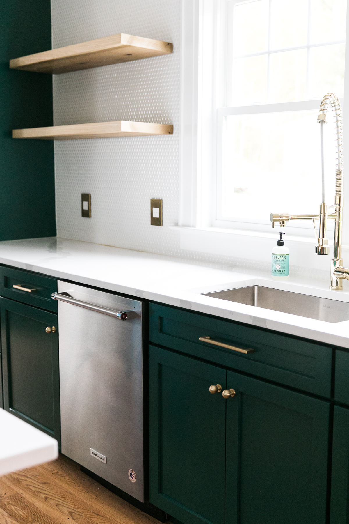 Green on cabinets – sign me up? Love it. Looking forward to the finished space