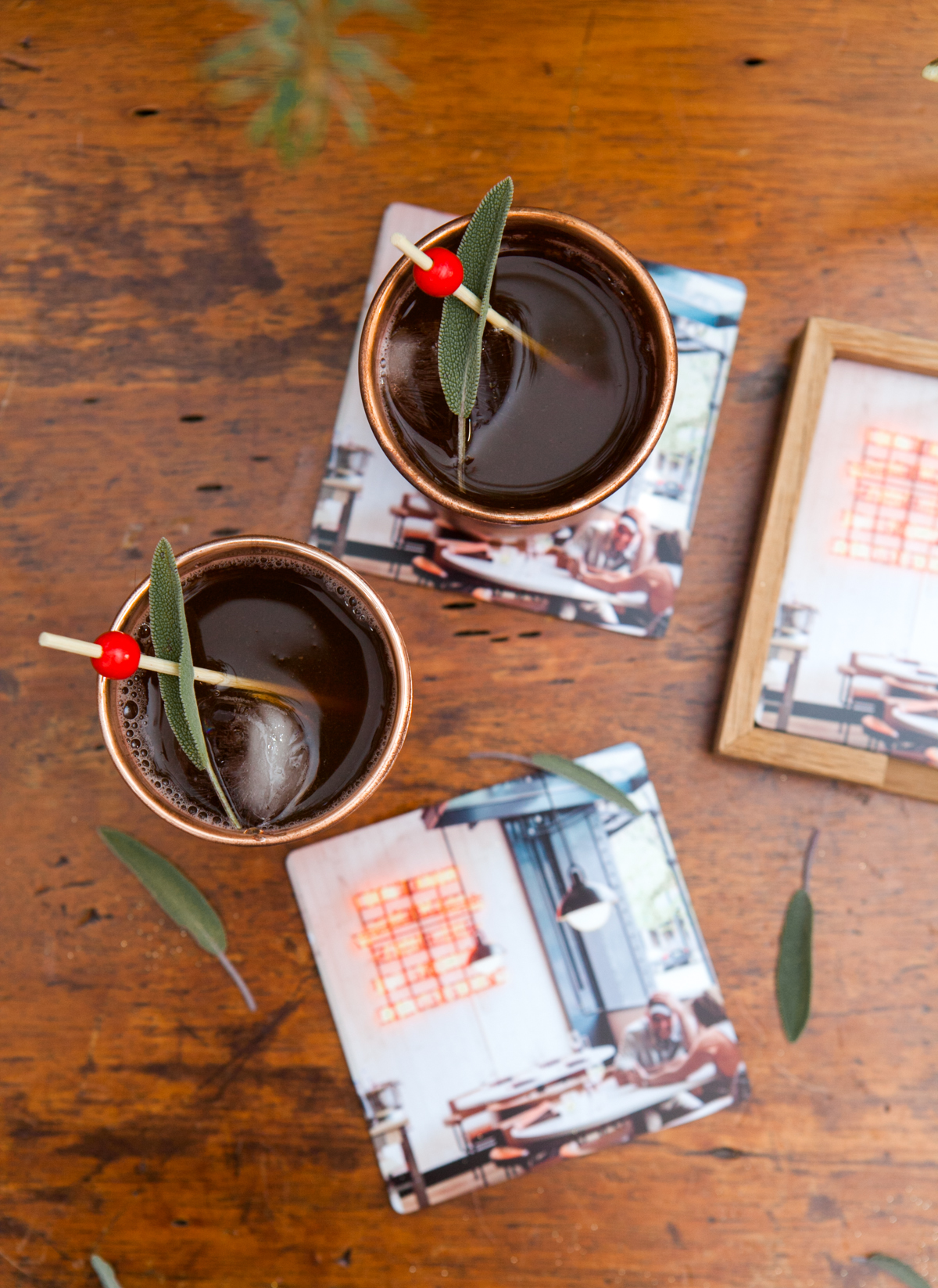 Lo and behold, two cute-as-heck copper mugs, a set of cocktail picks, a wintry cocktail recipe booklet with Punch Drink (super score!!) and some killer metal coasters with my fave print. Every box comes with a little booklet describing your new kit. Not to mention, the an illustrated “Cheers” print and coupon for a FREE PHOTO BOOK!! Awww, you guyssss.